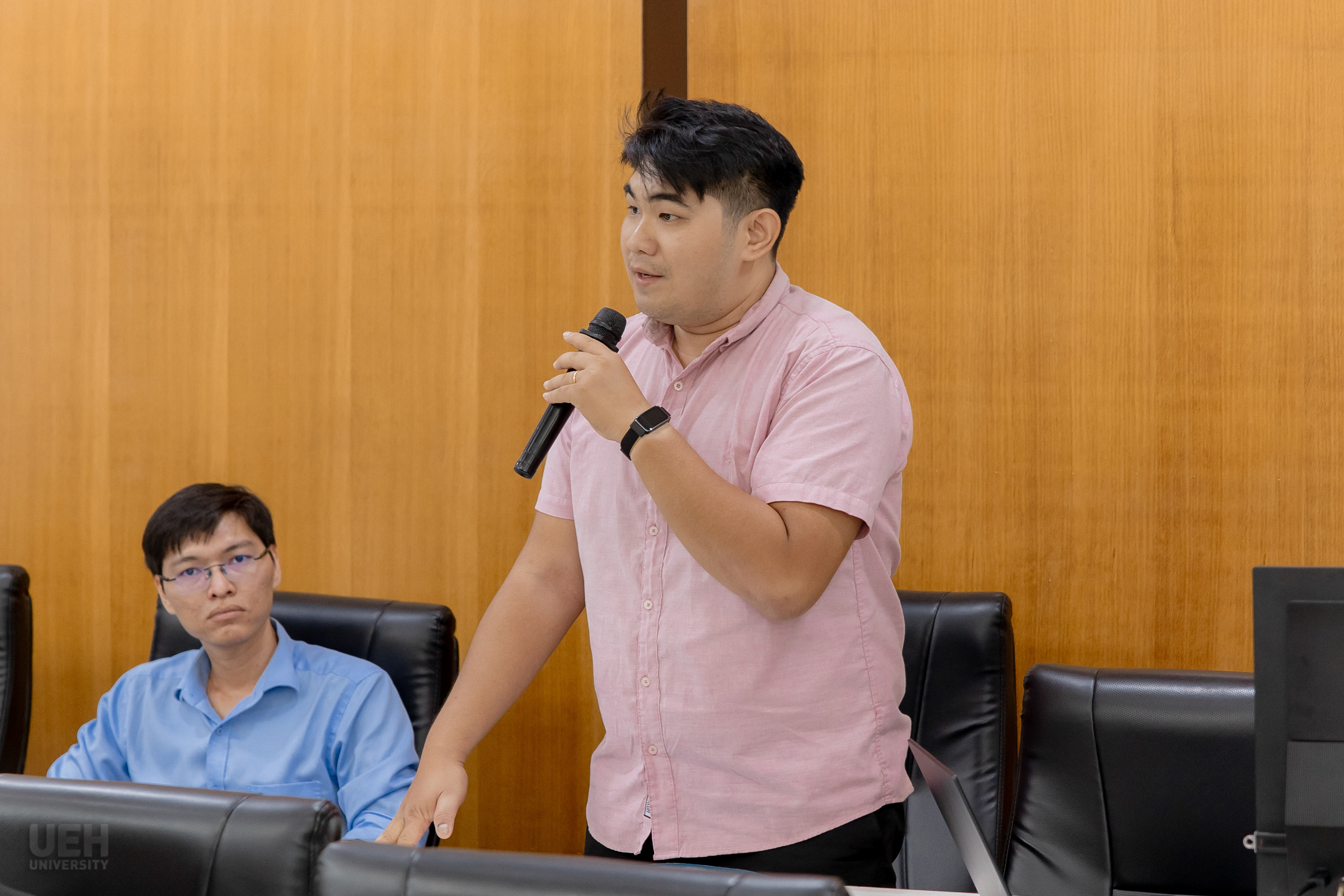 Đại diện IBR-UEH, ông Phạm Quốc Thy đã trình bày tổng quan chi tiết về Chương trình Liên kết Đào tạo Tiến sĩ giữa UEH và Đại học Huddersfield, nhấn mạnh cấu trúc chương trình được xây dựng theo các chuẩn mực quốc tế, cơ chế đồng hướng dẫn chặt chẽ giữa đội ngũ học thuật của hai trường, cùng lộ trình nghiên cứu linh hoạt phù hợp với đặc thù của nghiên cứu sinh Việt Nam. Bên cạnh đó, ông cũng giới thiệu hệ sinh thái hỗ trợ nghiên cứu toàn diện của IBR-UEH, từ định hướng công bố quốc tế, các khóa bồi dưỡng phương pháp nghiên cứu, đến mạng lưới học thuật và chuyên gia rộng mở. Chương trình không chỉ góp phần nâng cao năng lực nghiên cứu của giảng viên và nghiên cứu sinh UEH, mà còn thúc đẩy mạnh mẽ hợp tác khoa học quốc tế, mở rộng cơ hội kết nối học thuật và gia tăng chất lượng các công bố trên các tạp chí uy tín.