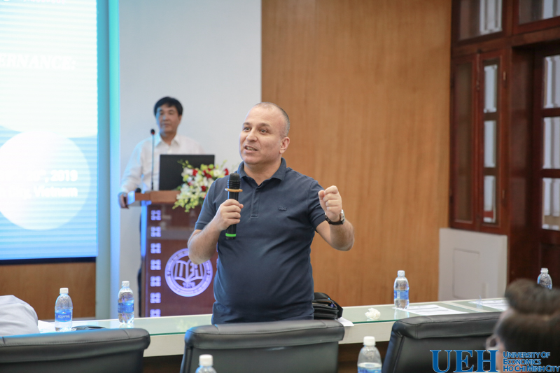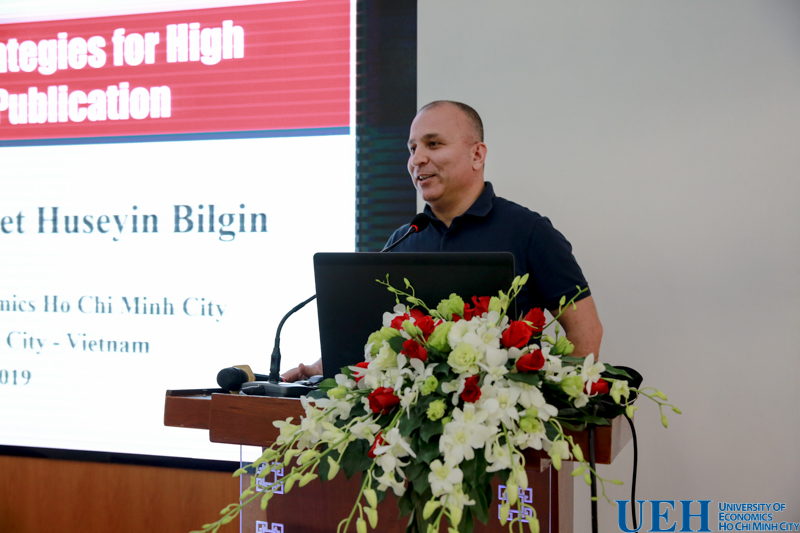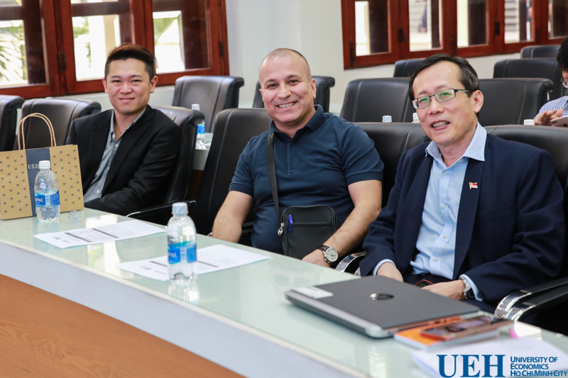 Lý Thị Minh Châu – Trưởng phòng Đảm bảo chất lượng – Phát triển chương trình trình bày về các bước chuẩn bị cho quy trình đăng ký xếp hạng đại học QS Asia của UEH và TS. Trần Mai Đông – Trưởng phòng Quản lý khoa học – Hợp tác quốc tế trình bày về chiến lược quốc tế hóa tại UEH. Tiếp nối chương trình là phần chia sẻ về các chiến lược nghiên cứu của GS. Mehmet Huseyin Bilgin – Phó chủ tịch Hiệp hội Kinh tế và Kinh doanh Á Âu (EBES) và tham luận về việc phát triển nghiên cứu và các xu hướng nghiên cứu trong lĩnh vực kinh tế hiện nay trên thế giới của GS. Jonathan Tan.