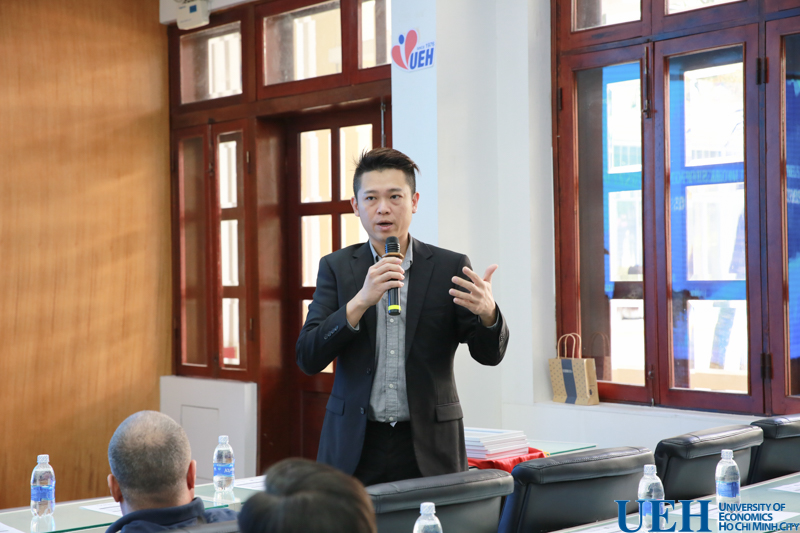 Euston Quah chia sẻ những kết quả đạt được trong lần gặp gỡ và trao đổi về QS Asia với UEH diễn ra ngày 18/12/2018 và giới thiệu về các nội dung trao đổi trong hội thảo lần này.