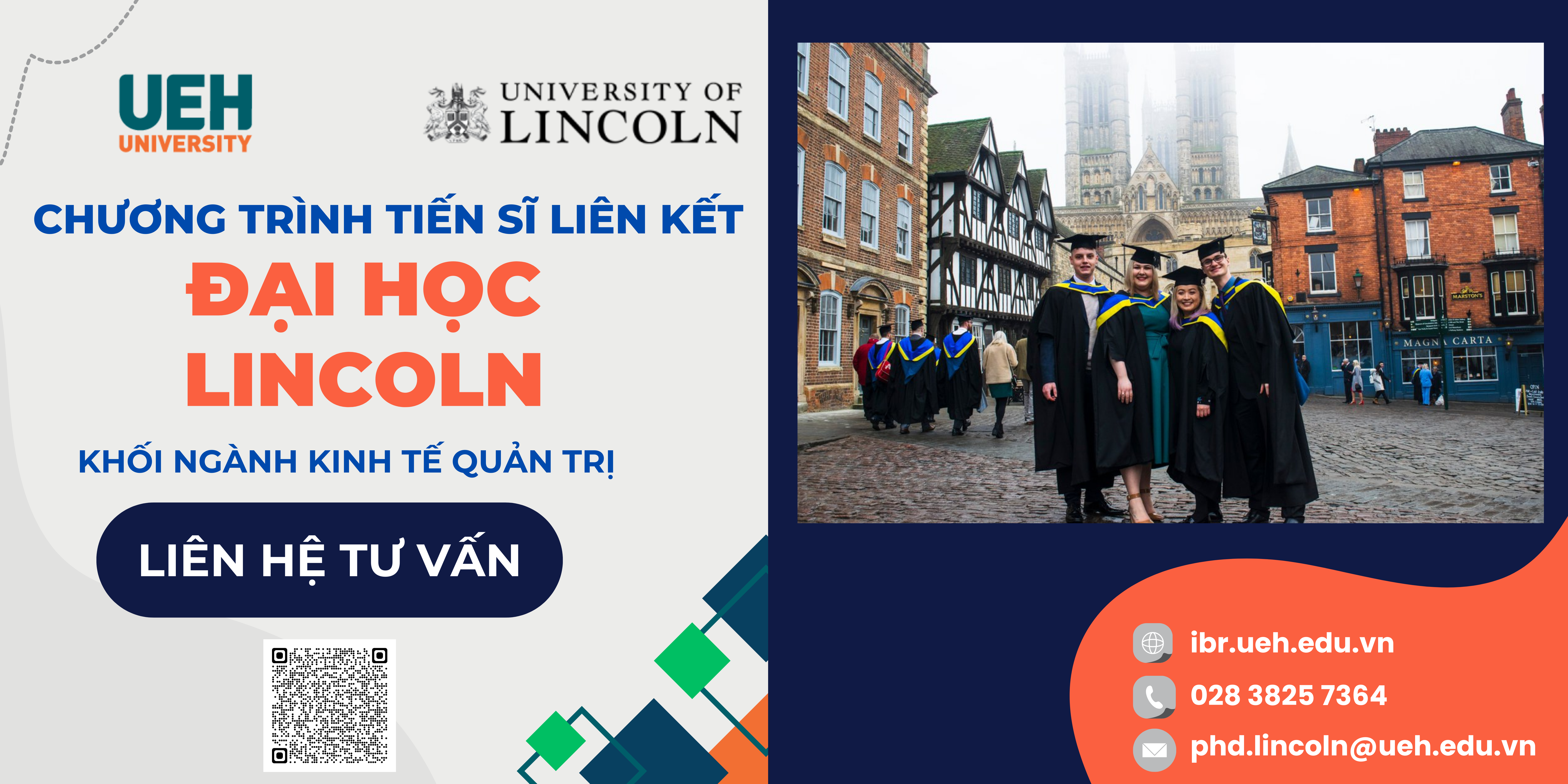 Chương trình học tiên tiến, phù hợp với thực tiễn, được công nhận trên phạm vi quốc tế: bằng Tiến sĩ (PhD) có giá trị quốc tế, do đại học Lincoln – Vương quốc Anh cấp và được Bộ Giáo dục và Đào tạo công nhận.