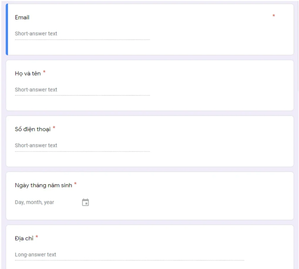 Bước 3: Điền đầy đủ thông tin cá nhân vào form như sau: