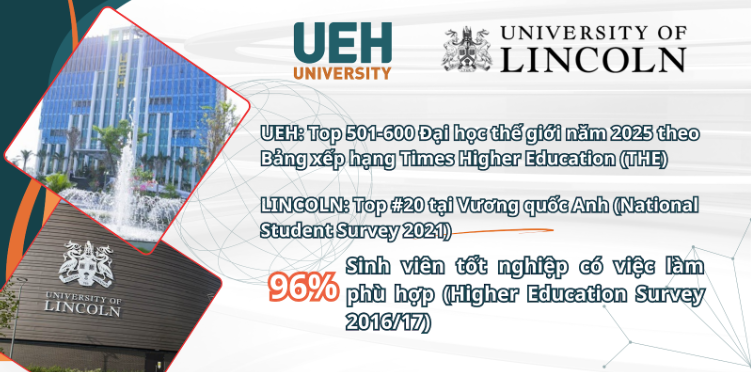 Cử nhân Lincoln 1+2 là chương trình liên kết quốc tế đào tạo cấp bằng Cử nhân Kinh tế giữa Đại học Lincoln, Vương quốc Anh và Đại học Kinh tế TP. Hồ Chí Minh (UEH) với mục tiêu đem đến cho Sinh viên Việt Nam chương trình cử nhân liên kết chuẩn Quốc tế với các ưu điểm như sau: