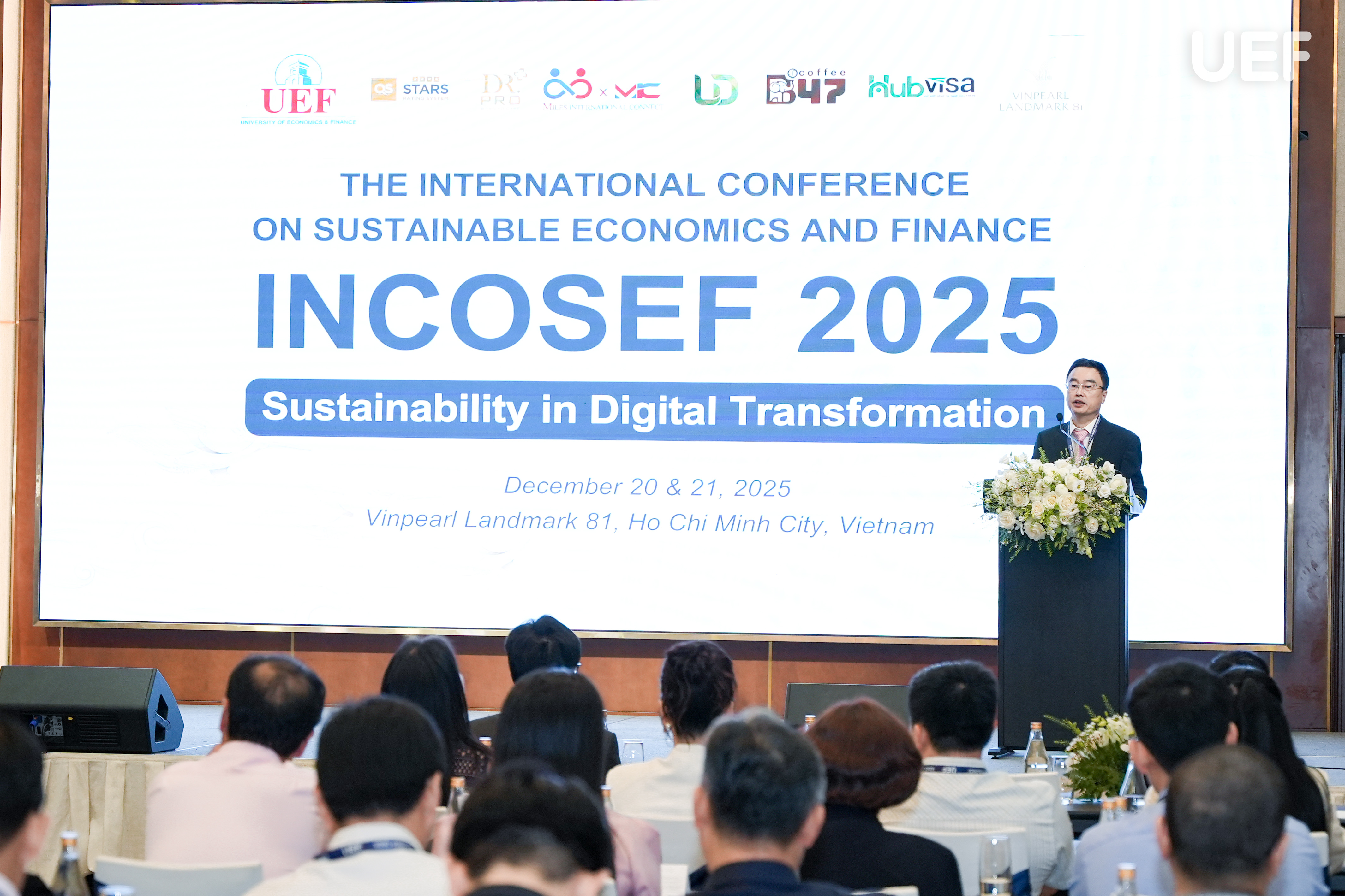 The International Conference on Sustainable Economics and Finance (INCOSEF 2025) was held in Ho Chi Minh City from 20 to 21 December 2025, hosted by University of Economics and Finance, Ho Chi Minh City (UEF). On the morning of 20 December 2025, Prof. Vo Xuan Vinh – Dean of the Institute of Business Research, attended the conference as a Keynote Speaker.