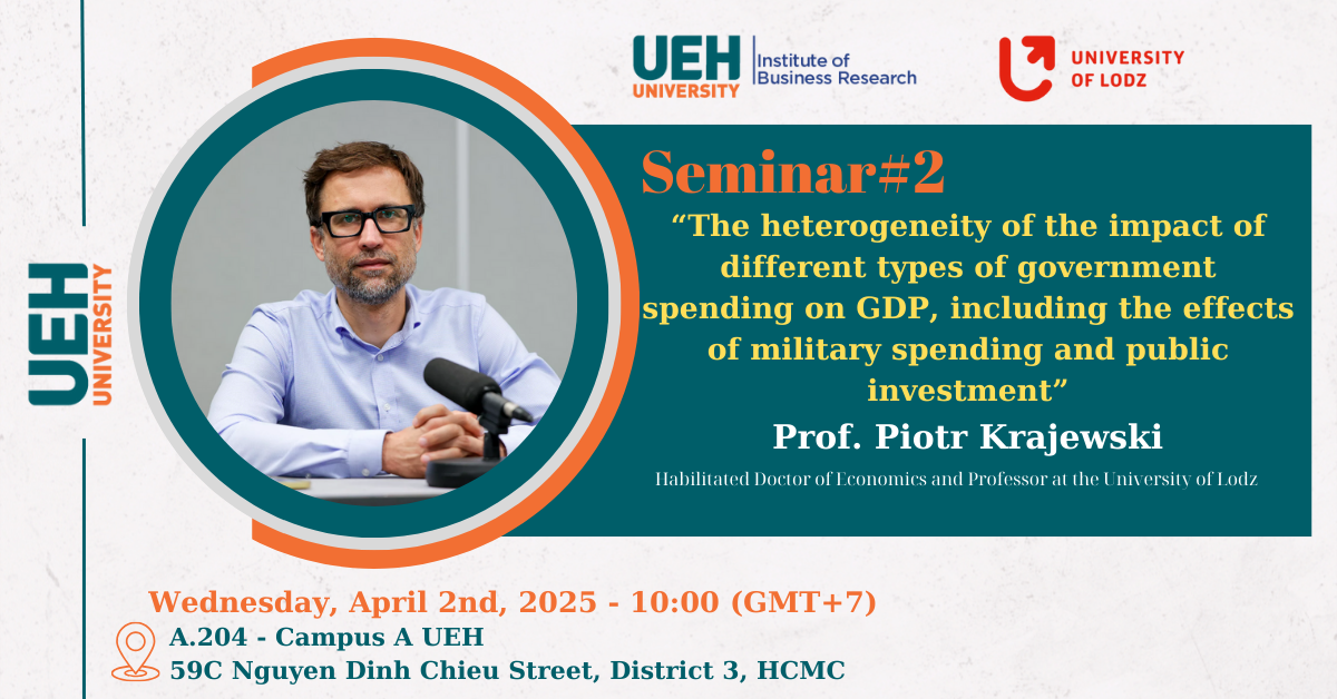 Home / Hội thảo / [02/4/2025] Seminar #2: “The heterogeneity of the impact of different types of government spending on GDP, including the effects of military spending and public investment”