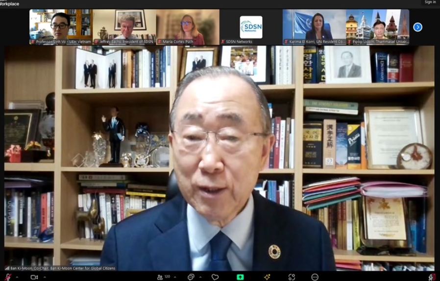 Vào sáng ngày 07/06/2024, Đại học Kinh tế TP.HCM (UEH) đã tham gia trực tuyến phiên họp định kỳ của Tổ chức Mạng lưới Phát triển Bền vững Liên Hợp Quốc (SDSN). Cuộc họp có sự góp mặt của các chuyên gia hàng đầu, bao gồm cựu Tổng Thư ký Liên Hợp Quốc – TS. Ban Ki-moon, GS.TS Jeffrey Sachs – Chủ tịch Mạng lưới UN SDSN và TS. Maria Cortes Puch – Phó Chủ tịch UN SDSN cùng toàn bộ các thành viên khác. Đại diện UEH có sự tham gia của PGS.TS Nguyễn Phong Nguyên – Phó Ban thường trực Ban Nghiên cứu – Phát triển và Gắn kết Toàn cầu và GS.TS Võ Xuân Vinh – Viện trưởng Viện Nghiên cứu Kinh doanh.