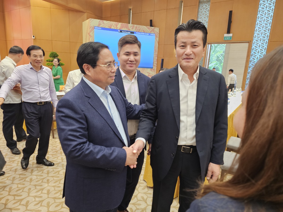 Thủ tướng Phạm Minh Chính cùng với Ông Park Se Yeol, Tổng Giám Đốc Công ty TNHH Thực Phẩm Orion Vina tại chương trình Chuyển đổi thành nhà máy thông minh trên nền tảng công nghệ số quốc gia (Nguồn: Công ty TNHH Thực Phẩm Orion Vina)