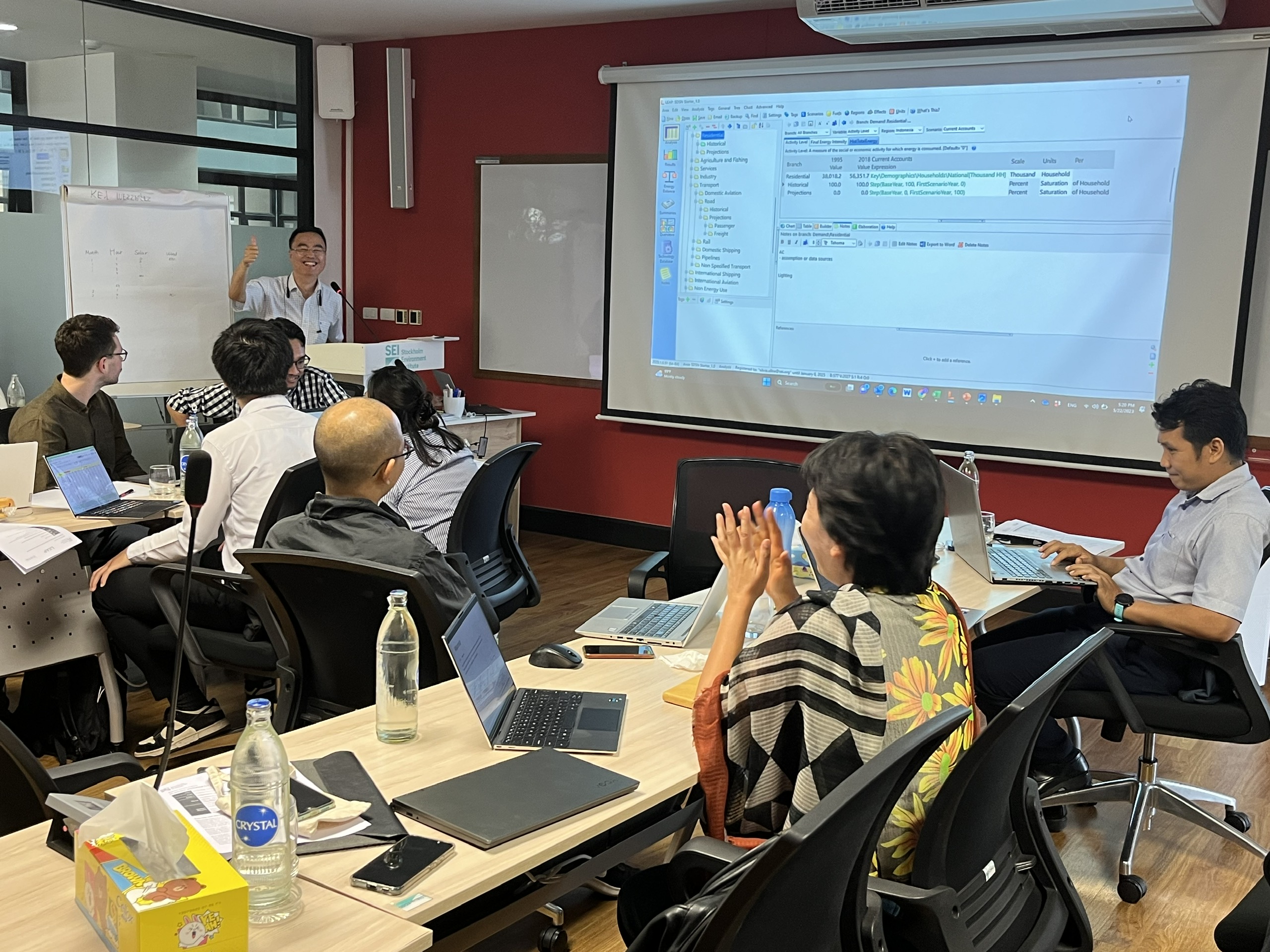 Trước đó, từ ngày 27 tháng 3 đến ngày 18 tháng 4 năm 2023, Viện Môi trường Stockholm (Stockholm Environment Institute – SEI) đã tổ chức các buổi hội thảo trực tuyến nhằm thảo luận với các nhà nghiên cứu về việc sử dụng các công cụ lập mô hình định lượng để đánh giá các lộ trình khử cacbon tiềm năng trong khu vực. Các buổi hội thảo đã giới thiệu cho người tham gia về Nền tảng phân tích phát thải thấp (Low Emissions Analysis Platform – LEAP) và Hệ thống mô hình tối ưu hóa năng lượng kế tiếp (Next Energy Modeling System for Optimization – NEMO), một bộ công cụ mô hình hóa để phân tích năng lượng, môi trường và kinh tế. Bước tiếp theo, SEI tổ chức hội thảo trực tiếp từ ngày 22-25 tháng 5 tại Trung tâm Châu Á ở Bangkok. Thành phần tham gia hội thảo là những người sẽ lãnh đạo sự phát triển liên tục của các mô hình LEAP ở mỗi quốc gia.