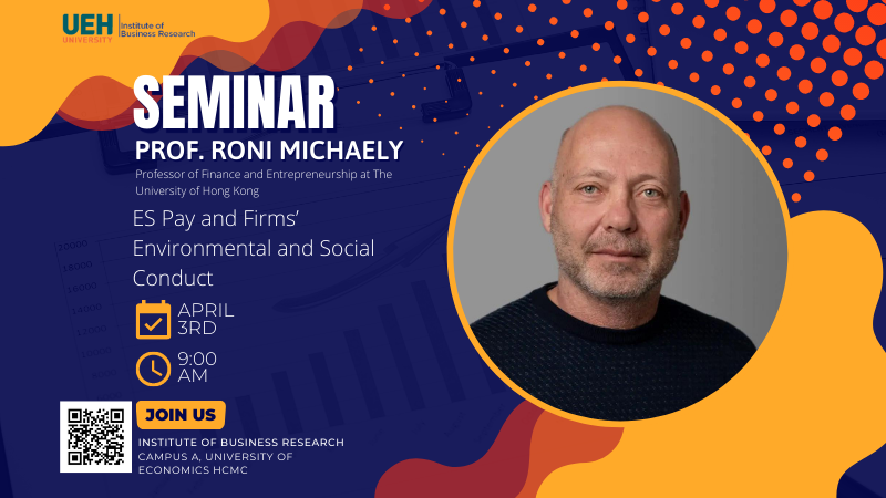 Cùng tham gia với chúng tôi tại Hội thảo “ES Pay and Firms’ Environmental and Social Conduct” để tìm hiểu sâu hơn về sự phổ biến và tác động của ES Pay, từ diễn giả ngành Tài chính hàng đầu thế giới – GS.TS. Roni Michaely.